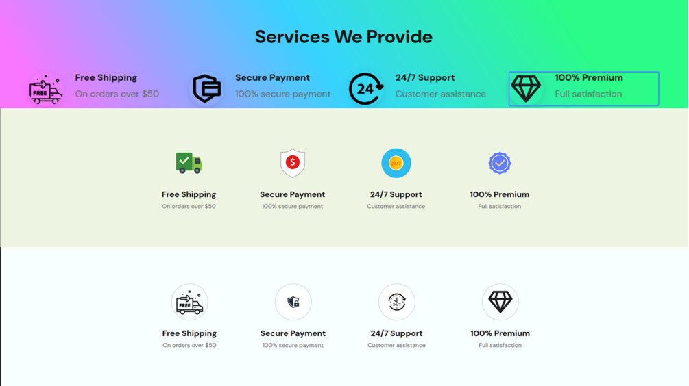 Build a professional, visually stunning feature showcase in your Shopify store using this premium Icon & Text Section. Designed for non-coders and developers alike.